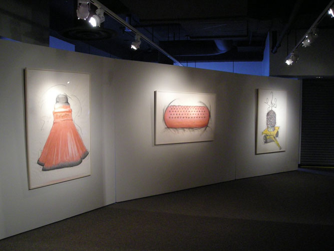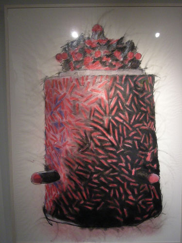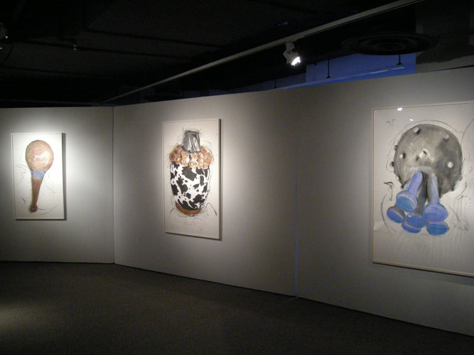 The drawings represented in this exhibition are derived from sculptures created over several years. I intended to draw whimsical two-dimensional illustrations of these sculptures. I used exaggerations of line superimposed over renderings of the pieces. The technique offers the viewer insight into the energy put forth in the creation the sculptures. |